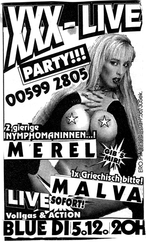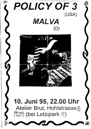 Hallo Betrachter! Falls du diese Zeilen liest und rein zufällig noch alte Malva-Flyer/Poster in deiner Mottenkiste gammeln, oder in deinem Schrein strahlen, wär es einfach nur rattenscharf, wenn du uns ne digitale oder gerne auch analoge Kopie schicken würdest. >send old malva flyers
