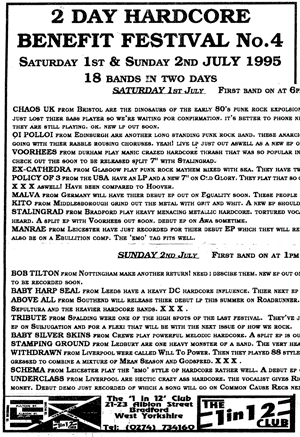 1995 > 2 day hardcore benefit festival > the 1 in 12 club > bradford